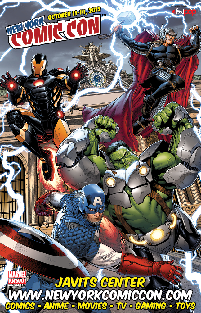A poucas horas atrás a Marvel revelou seu poster oficial para a New York Comic Con 2012, que acontece do dia 11 à 14 de outubro, e estará espalhado por todos eventos e também em algumas comics shop dos IZTADUSUNIDUS.