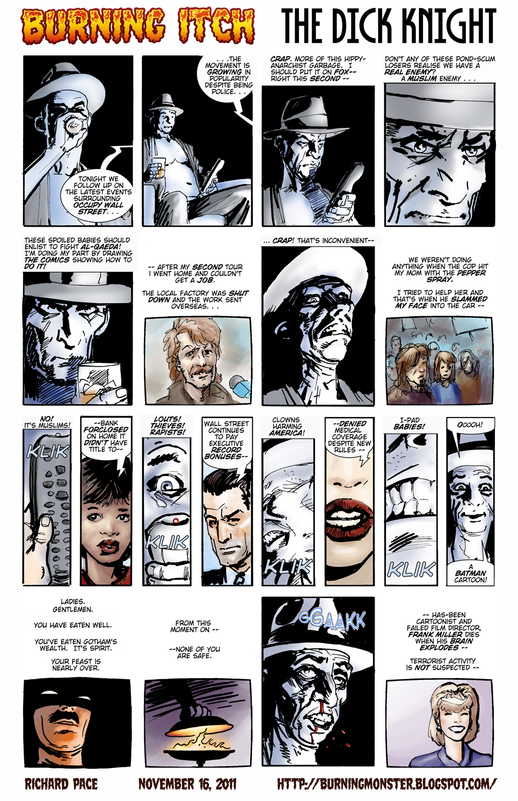 Para piorar, no ano passado em seu blog pessoal Miller disse que os manifestante do movimento Occupy Wall Street, não passavam ” De um bando de arruaceiros, ladrões e estupradores que não prestavam para nada além de ameaçar a América”, indo contra o caráter contestador que permeou quase tudo que ele escreveu em seu período áureo: