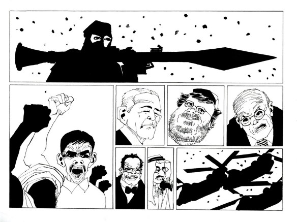 Este último além de ruim é polêmico por mostrar um Batman Genérico (originalmente era para ser uma história do Batman, mas a DC teve bom-senso e não levou o projeto para frente) espancando terroristas muçulmanos. O problema é que de uns anos para cá, para Miller, todo muçulmano é terrorista, o escritor cansou de dar declarações para lá de agressivas contra árabes e seguidores da religião.