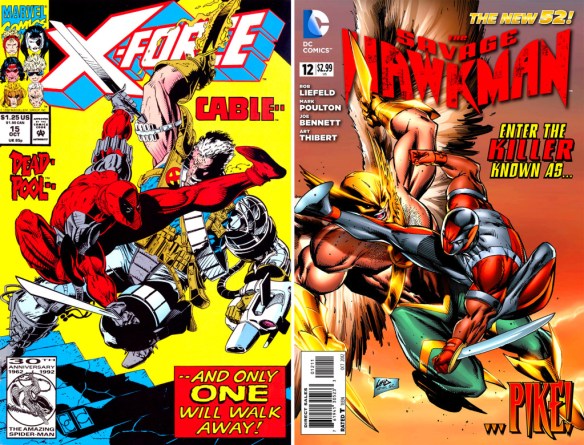 O Bleeding Cool pescou mais uma auto-homenagem do desenhista-modelo-e-atriz Rob Liefeld, mestre na arte da reciclagem de desenhos: