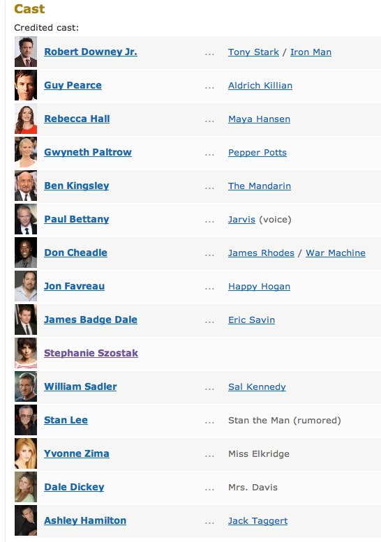 Wardell tuítou que a “Os fãs ficarão maluco quando for divulgada o papel que a atriz Stephanie Szostak irá interpretar em Homem de Ferro 3”. Me dá Ibágens!