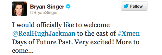 bryan_singer _tweet Published dezembro 19, 2012 at 524 × 180 in Confirmado! Hugh Jackman Estará na Sequência de X-Men First Class