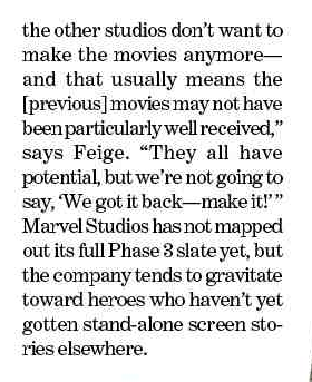 O Bleeding Cool recortou (literalmente) essa trecho de uma entrevista que Kevin Feige deu ao Entertainment Weekly, falando sobre a volta dos direitos cinematográficos dos personagens que retornaram à editora:
