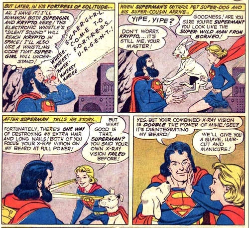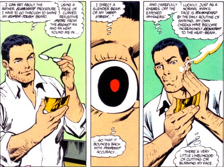 Eu por exemplo, lembro de cara da explicação dada na reformulação feita pelo John Byrne nos anos 80, em que ele usava um pedaço da nave que o trouxe a Terra para direcionar sua visão de calor: