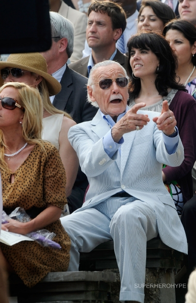 E finalmente, o bom-velhinho da Marvel, que está lá assistindo o evento e que parece querer alertar os presentes sobre alguma ameaça: