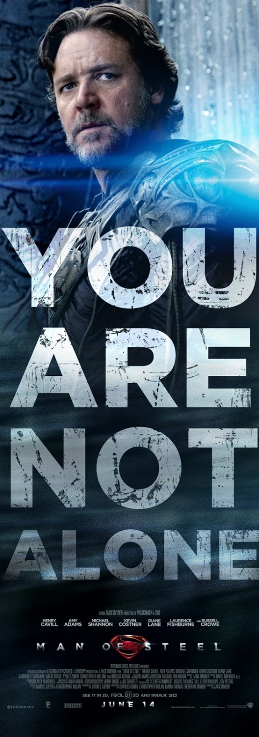 Os pôsteres destacam Superman, Zod e Jor-El e decretam: Você não está sozinho: