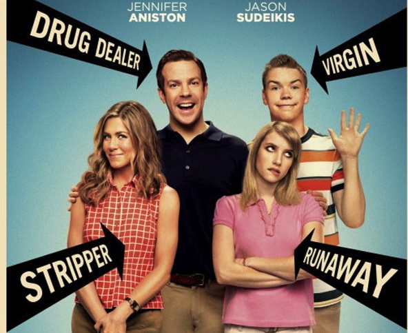 Há algum tempo tenho visto os trailers dessa comédia bastante promissora em que um traficante chinfrim monta uma família “de mentirinha”, com uma stripper no papel de devotada esposa e uma viciada e um imbecil como casal de filhos para tentar levantar poucas suspeitas na tentativa de cruzar a fronteira com um trailer cheio de maconha: