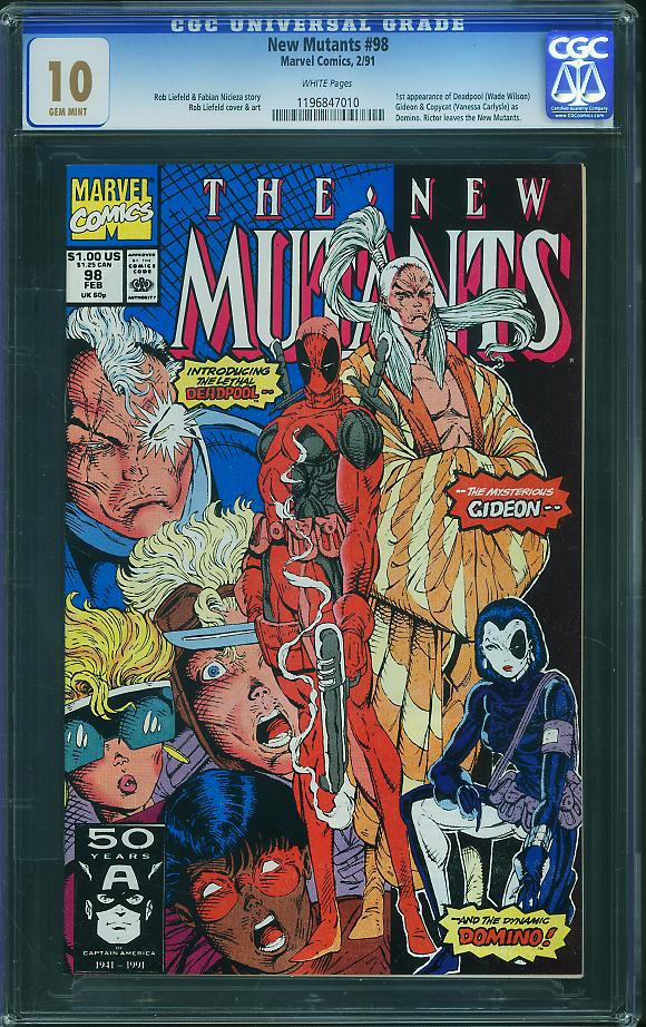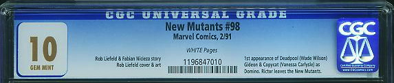 Esse DEZ aí da CGC (Comic Good Condition) é um grau de avaliação raríssimo de ser alcançado, significa que a revista está em perfeitas condições. Dos 37.000 exemplares de New Mutants 98 avaliados pela CGC, 1000 atingiram o grau 9.8 de avaliação e apenas esse único exemplar atingiu o grau 10, o que significa que ele é 1.000 vezes mais raro que as edições de grau 9.8, que já é uma nota difícil de ser alcançada.