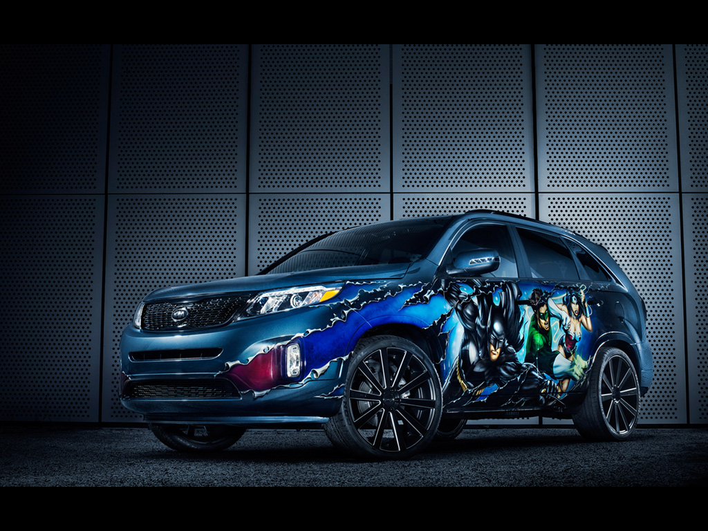 E por último o carro de toda a equipe o 2013 Kia Justice League Sorento, que comete o equívoco de colocar o Superman no volante! Tinha que ser o BatÊÊÊÊMA!