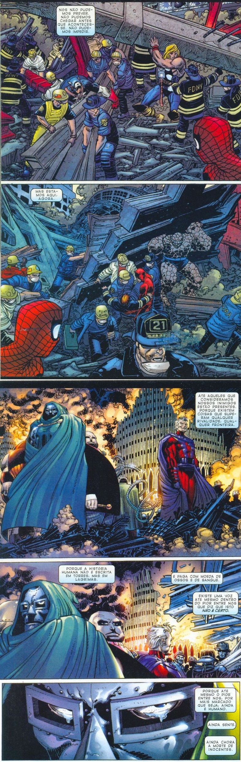 E quando bati o olho no relógio do micro hoje me veio a lembrança dessa HQ que originalmente foi publicada meses depois do atentado na edição 36 de Amazing Spiderman e foi considerada uma espécie de declaração oficial da Marvel a respeito do ocorrido.