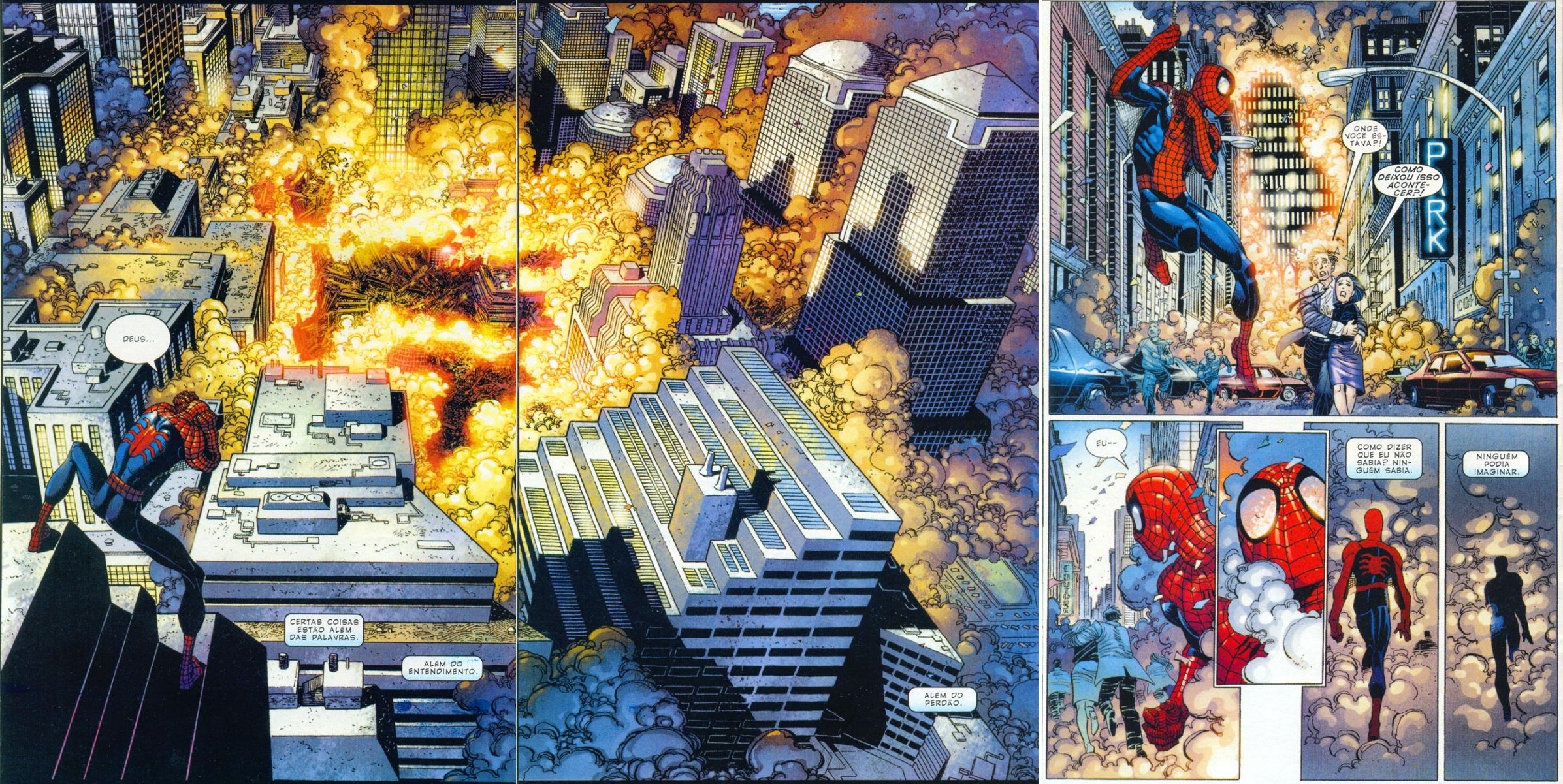 A história inicia quando o Homem-Aranha se depara com as torres do World Trade Center no chão, a poeira tomando conta das ruas e a população fugindo desesperada. Há um dialogo de questionamento ao herói sobre onde ele estava e como ele deixou isso acontecer.