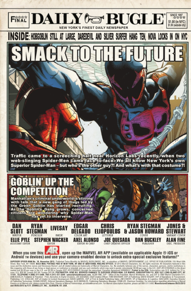 Já trouxemos algumas informações sobre o retorno de Miguel O’Hara nessa entrevista do ” novo Alan Moore”, o JENIAL Dan Slot, mas só hoje com o preview da edição de “Superior ai minha úlcera Spiderman 18 divulgado pelo Newsarama é que maiores detalhes vieram à tona.