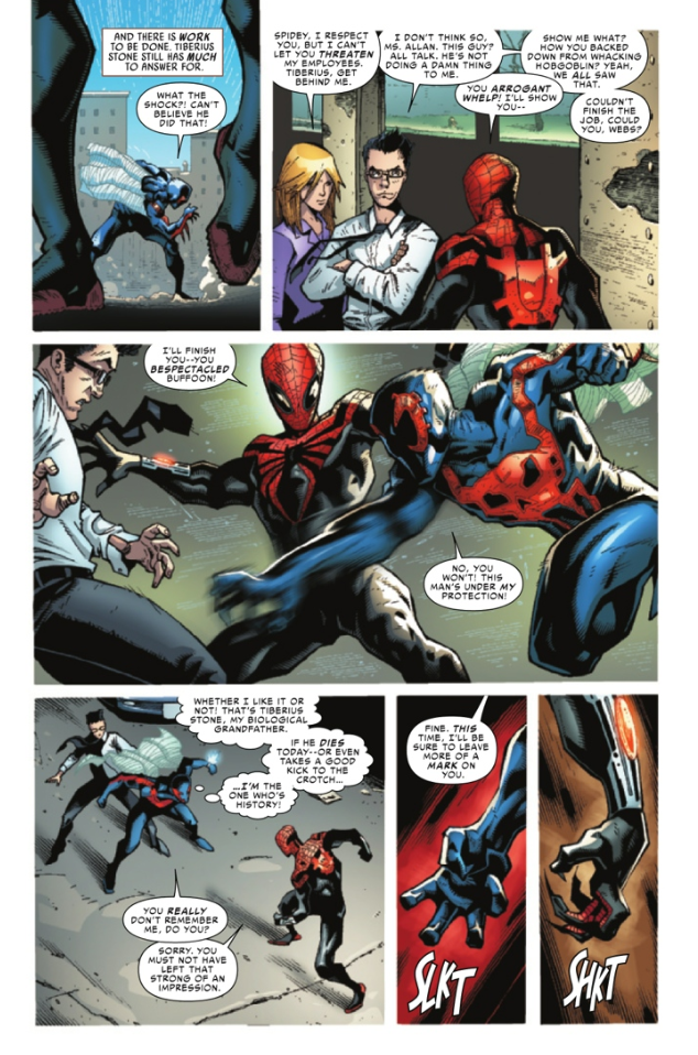 A se destacar também o fato que Ocpeter não se lembrar de O’Hara chegando a perguntar se ele era outro simbionte, clone ou simplesmente estava fazendo cosplay. Isso mostra que POtto Poctavius conseguiu mesmo se livrar da consciência de Peter Parker e assumindo em 100% o comando das ações.