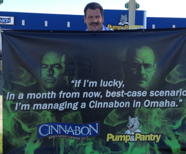 Esse tal Cinnabon é uma espécie de doceria com bolos e sorvetes que contém canela e Omaha é a maior cidade do estado de Nebraska, que por coincidência também é o nome de um longa metragem que o nosso Saul, Bob Odenkirk atuou e está promovendo essa semana nos EUA.