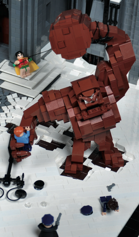 Além do prédio Xenomurphy ainda costumizou alguns bonecos para colocar personagens como Hera Venenosa, Cara de Barro, Sr . Frio e o Espantalho, por exemplo. E eles e todos os personagens foram imortalizados em Lego em meio a uma rebelião com os perigosos internos lutando contra a polícia e Batman e seus aliados: