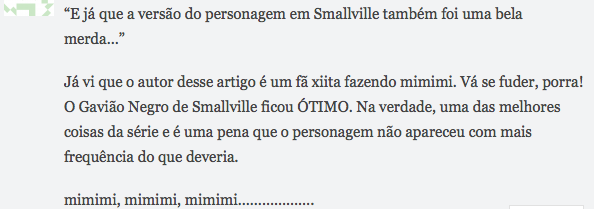 Agora, triste mesmo vai ser se nenhum fã da banda vir me xingar nos comentários, afinal até o Gavião Negro do Smallville teve seus defensores por aqui: