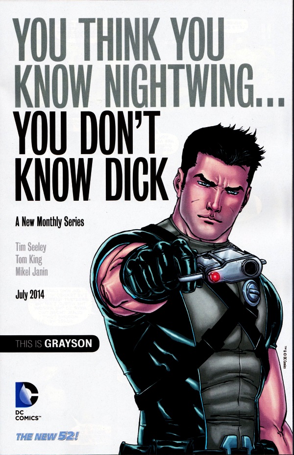 Em primeiro lugar essa frase cheia de duplo-sentido para promover a Grayson, revista que vem substituir a finada “Asa Noturna”