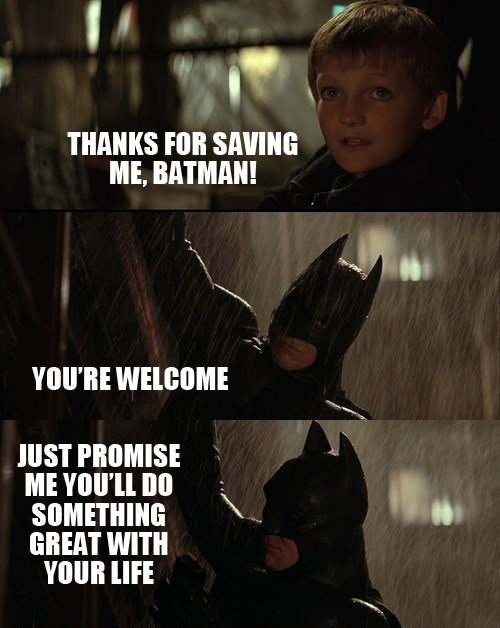 E que (claro!), O Batman inspirou alguns valores no ator quando o salvou em Batman Begins!
