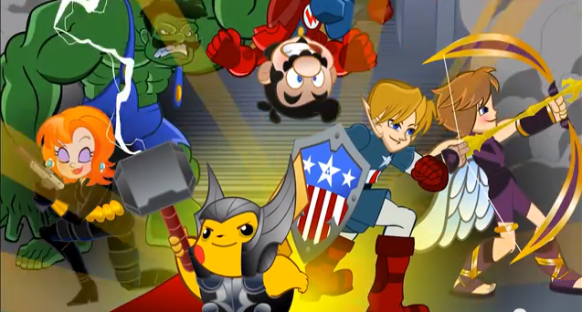 O especialista em mashups James Farr decidiu em seu mais novo trabalhos juntar os “Heróis mais Poderosos da Terra” com os ícones do da empresa que já foi a mais poderosa da indústria de videogames.
