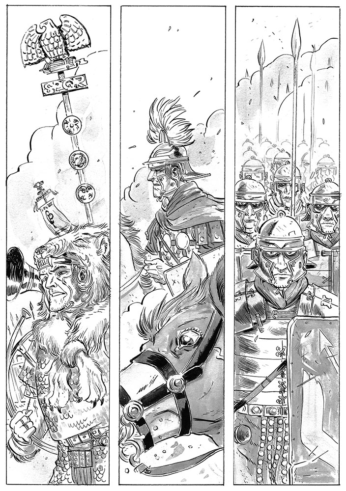 Outro ponto forte é a arte que consegue imprimir a grandiosidade necessária paras as cinematográficas cenas de ação. Seja quando o tribuno Jorge está no comando de seu exército ou quando está enfrentando o temível monstro, o traço e a narrativa de Beiruth saltam aos olhos.