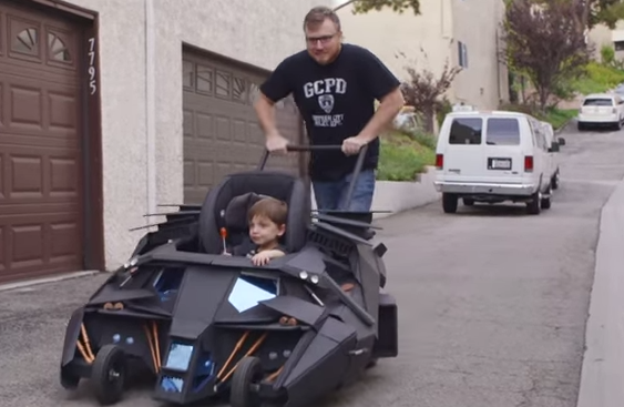 Nesse outro episódio eles fizeram a alegria de pai e filho fãs do Batman, criando um carrinho de bebê que é quase uma réplica perfeita do Tumbler usado como Batmóvel na trilogia do Nolan.
