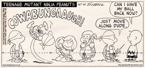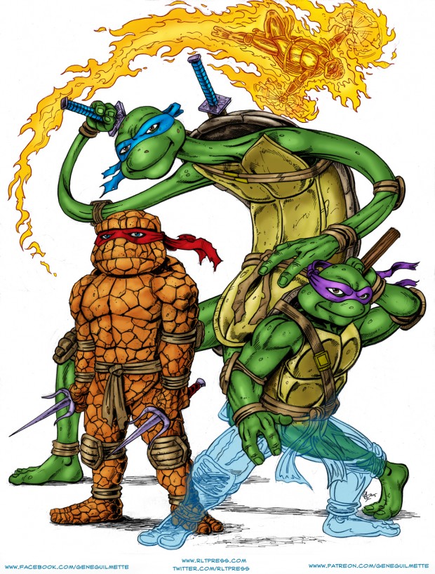 Já falei dela aqui, mas para quem está com preguiça de ir lá ler, em “The Line It is Drawn” um tema é sugerido para que os leitores/artistas mandem sugestões e artes para a coluna. E a proposta dessa semana foi imaginar crossover ou versões inusitadas das Tartarugas Ninja.