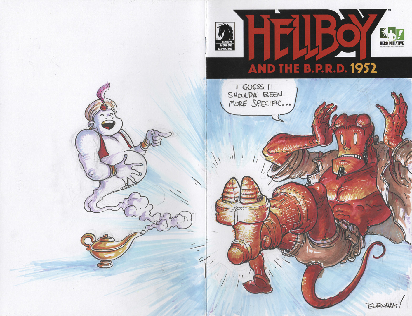 Cem cópias com capas em branco da primeira edição de Hellboy and the BRPDC#1 foram enviadas para que artistas como Rafael Albuquerque, Bill Sienkiewicz, Francis Manapul, Chris Burnham e o próprio pai da criança Mike Mignola pudessem criar uma capa exclusiva para “The Hellboy 100 Project”.