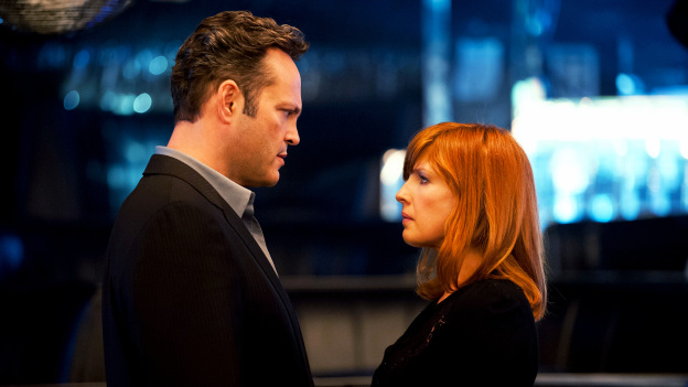 Tivemos 4 protagonistas nessa segunda temporada; os policiais Ray Velcoro (Colin Farrel), Ani Bezzerides (Rachel McAdams, Paul Woodrugh (Taylor Litsch) e o mafioso Frank Semyon (Vince Vaughn) ao contrário dos dois da primeira. Só que como obviamente quantidade não é sinal de qualidade faltou muito para que fossem igualados o carisma e o nível das atuações de Woody Harrelson e principalmente Matthew McConaughey. Por mais que Farrel tenha se destacado e nenhuma atuação tenha sido abaixo da média, aqueles diálogos existencialistas e filosófico que proporcionaram grandes momentos na primeira temporada, por exemplo, na atual soam sem sal e até infantis. Ok, pode ser que o texto tenha piorado, mas fazendo o exercício de imaginar um dos monólogos de Rust na boca de  Frank enquanto este mexe freneticamente as sobrancelhas  dá para constatar que a diferença está mesmo  na atuação sobrenatural de McConaughey, que provavelmente  daria profundidade até em uma leitura de receita de bolo.