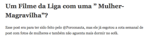 E ela é o motivo principal de eu estar martelando o teclado às 1:15 da manhã, eu tinha que fazer um mea -culpa por ter sido o babaca que escreveu esse post aqui: