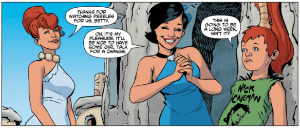 A surpresa logo ao iniciar a leitura só não foi maior porque o título mensal dos Flinstones lá fora já vinha recebendo várias críticas positivas, mas eu realmente não esperava que conseguissem fazer algo tão interessante e tão atual baseado em um material fonte que hoje em dia pode ser considerado bem simplório.