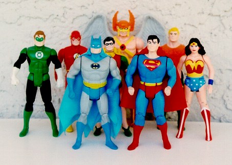 Esta imagem acima é de uma linha de action figures dos heróis da DC lançada nos anos 80/90 baseada principalmente nos desenhos dos Superamigos. Esses da foto eram apenas alguns dos personagens que faziam parte da coleção mas tinham vários incluindo os vilões e os veículos dos heróis principais.